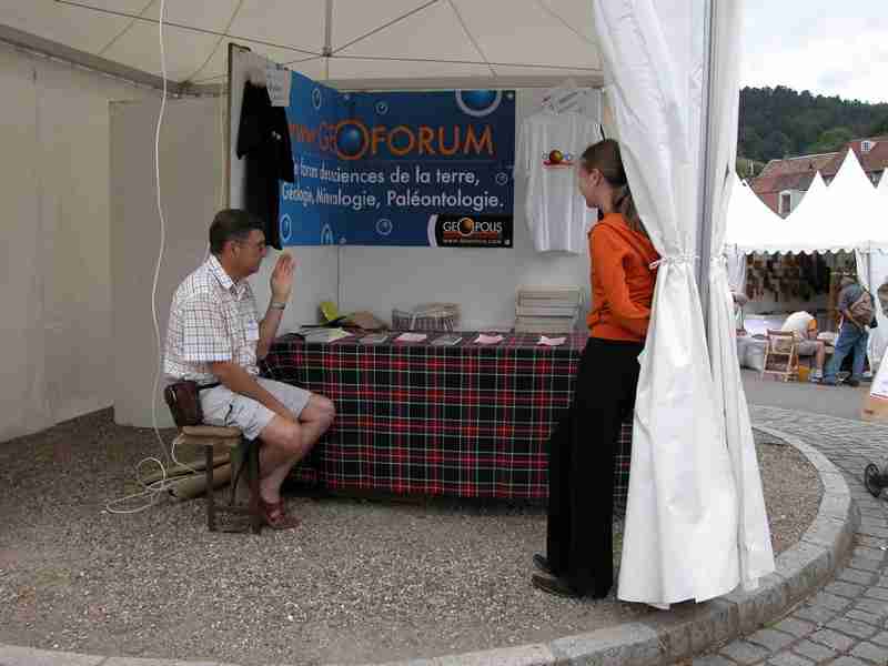 - le stand Géopolis avant l'ouverture le jeudi et le Géoforum est à l'honneur.... On a l'impression que Claude est en train de bénir le stand, joli non ?
