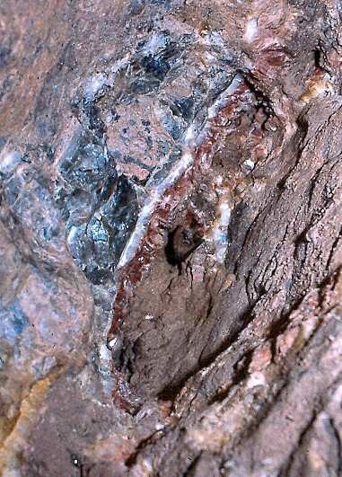 Je suis parti et suis allé gratter aux travaux intermédiaires (galerie Faraut). dommage, à l'entrée de la galerie il y avait des filonnets de calcite centimétriques avec orpiment, recouverts d'oursins de picropharmacolite, que j'avais repéré lors de la précédente visite, et à qui je réservais mes efforts à venir.