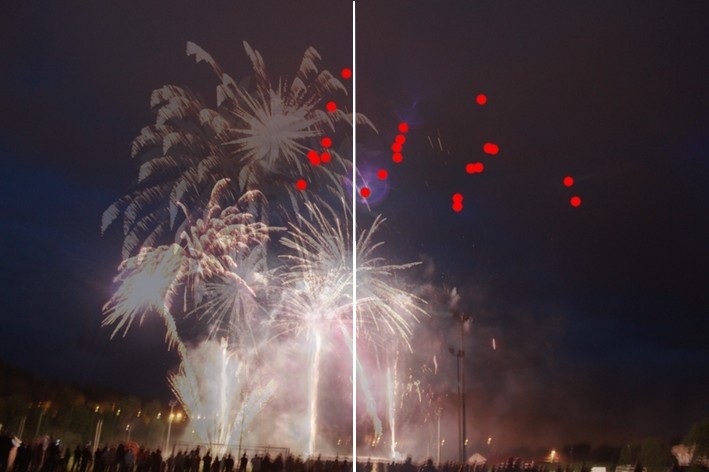 vous remarquerez aussi dans le ciel un effet "miroir" sur les feux en éventail ! dans la 2ème partie !