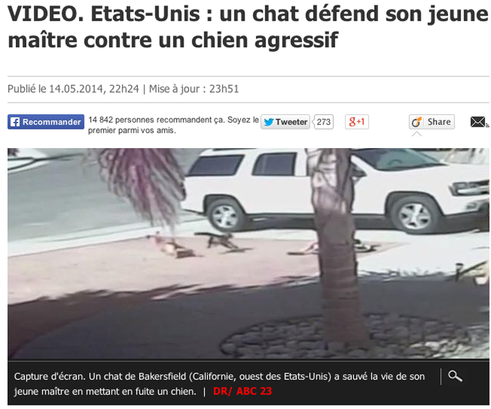 Trop génial ! Le chat de la maison qui défend son petit maître, attaqué par un chien errant...