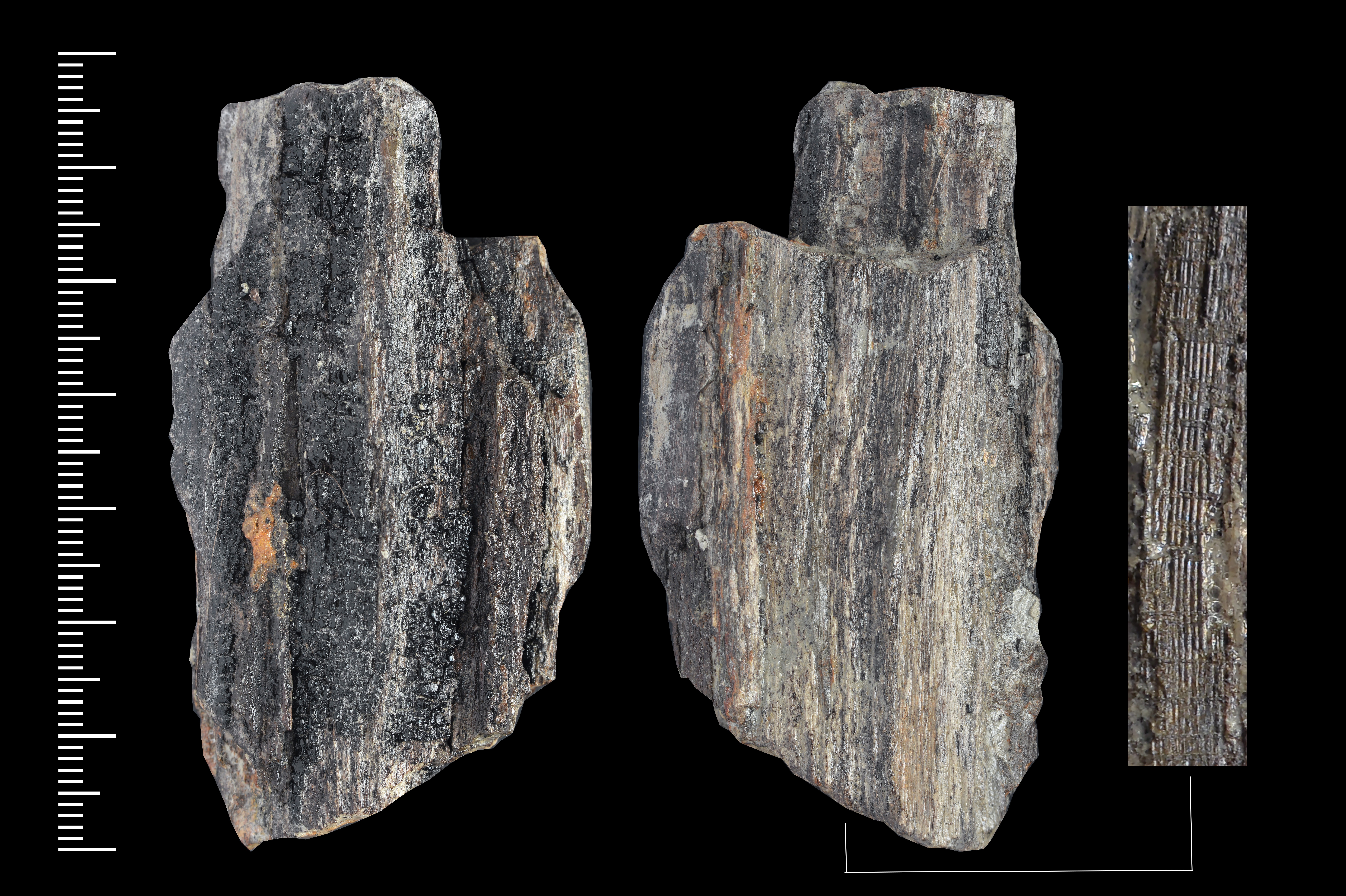 Imprégnation ferrugineuse de la surface d'un tronçon de branche ou de racine, la structure interne du bois n'est pas conservée.