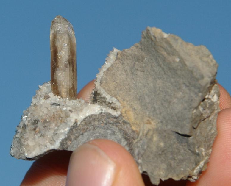Chose amusante, un coté de la fissure a uniquement des têtes de quartz, l'autre coté a des quartz plus développés et plus trapus.