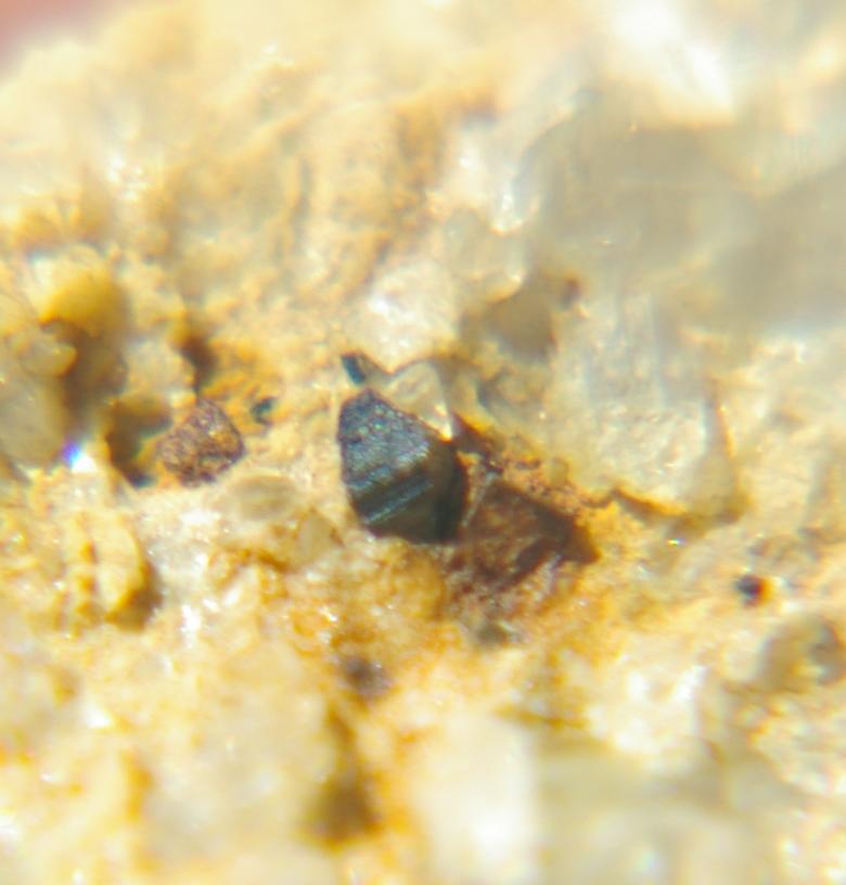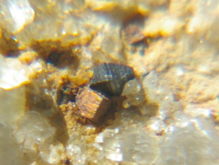 Les quartz sont piqués donc pas transparents, certains ont dessus, d'autre en inclusions, de l'anatase (si c'en est !) mais les pyramides sont toutes infra millimétriques et donc quasi invisible...