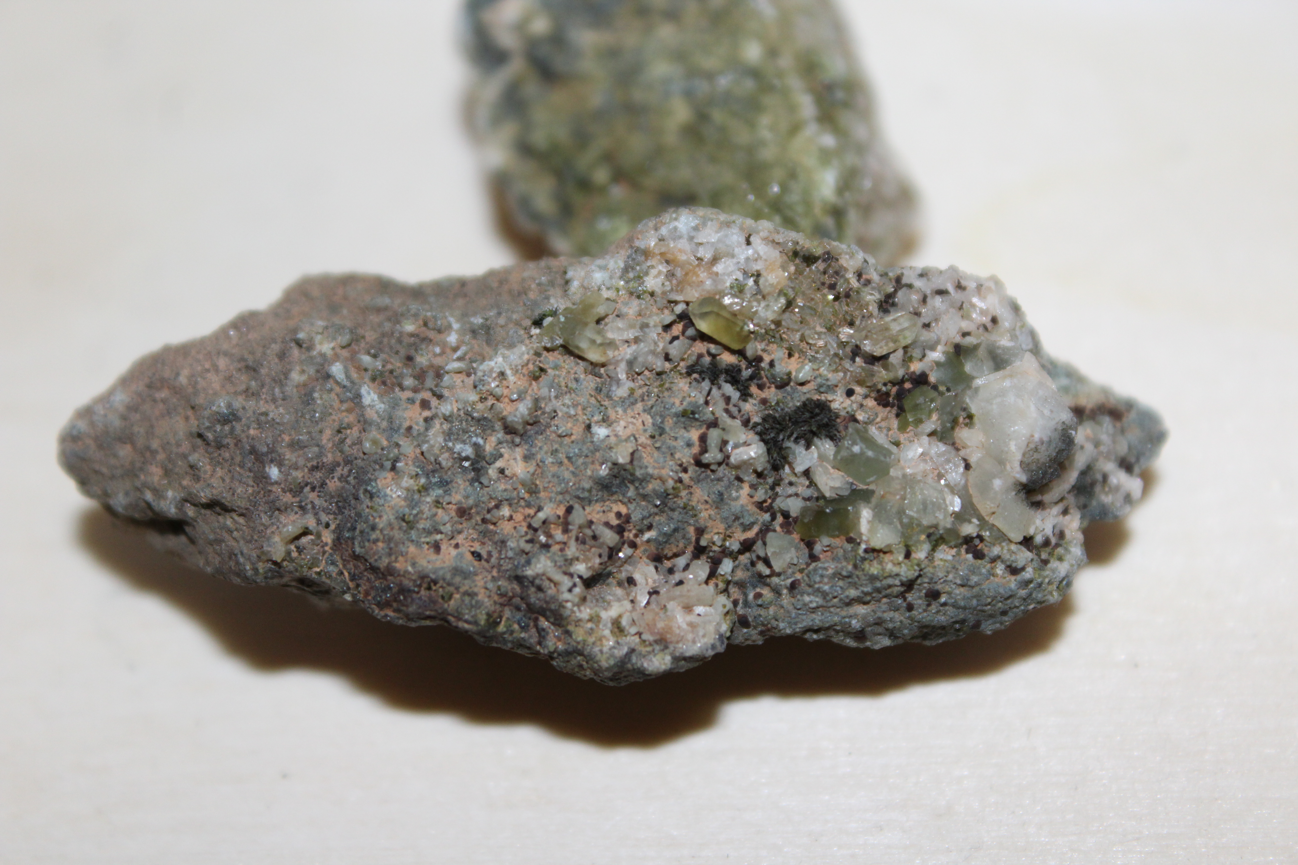 Pour la chlorite frontière italienne : à quoi penses-tu comme cristaux verts ? Si ce sont les cristaux à facette vert clair, ce serait plutôt du quartz avec inclusion d'amiante, non ? Mais si tu penses aux points noirâtres, cela sembmle être organique (lichen)