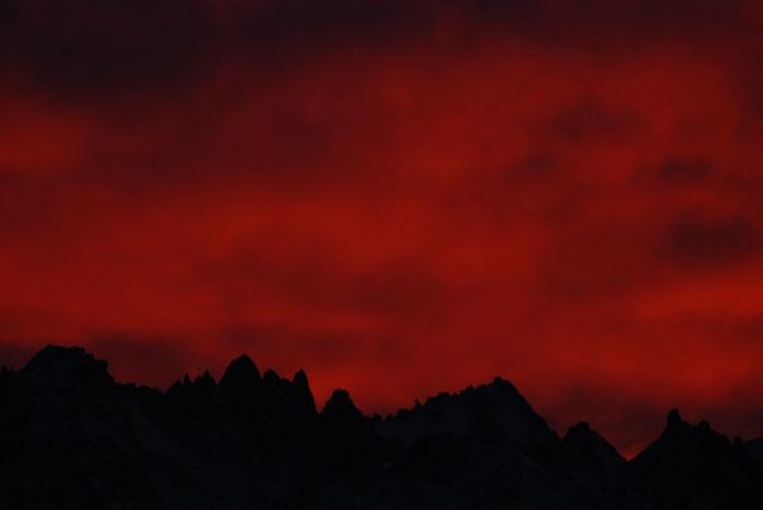 On reconnaît les Aiguilles dorées (massif du Mt-Blanc côté suisse) et le Chardonnet.