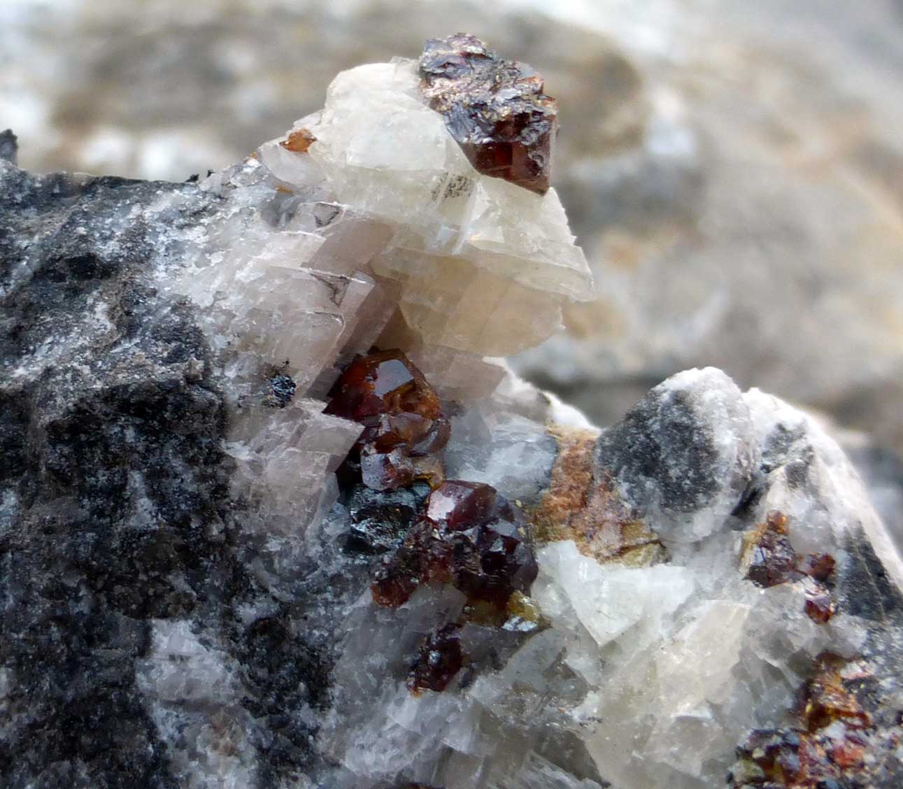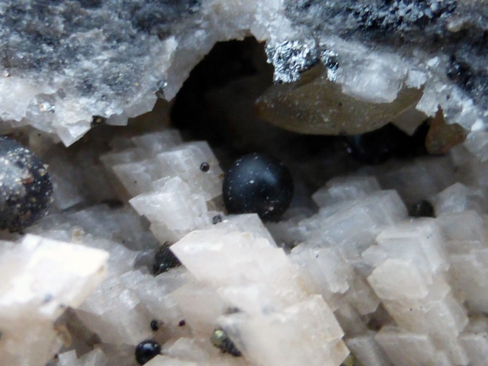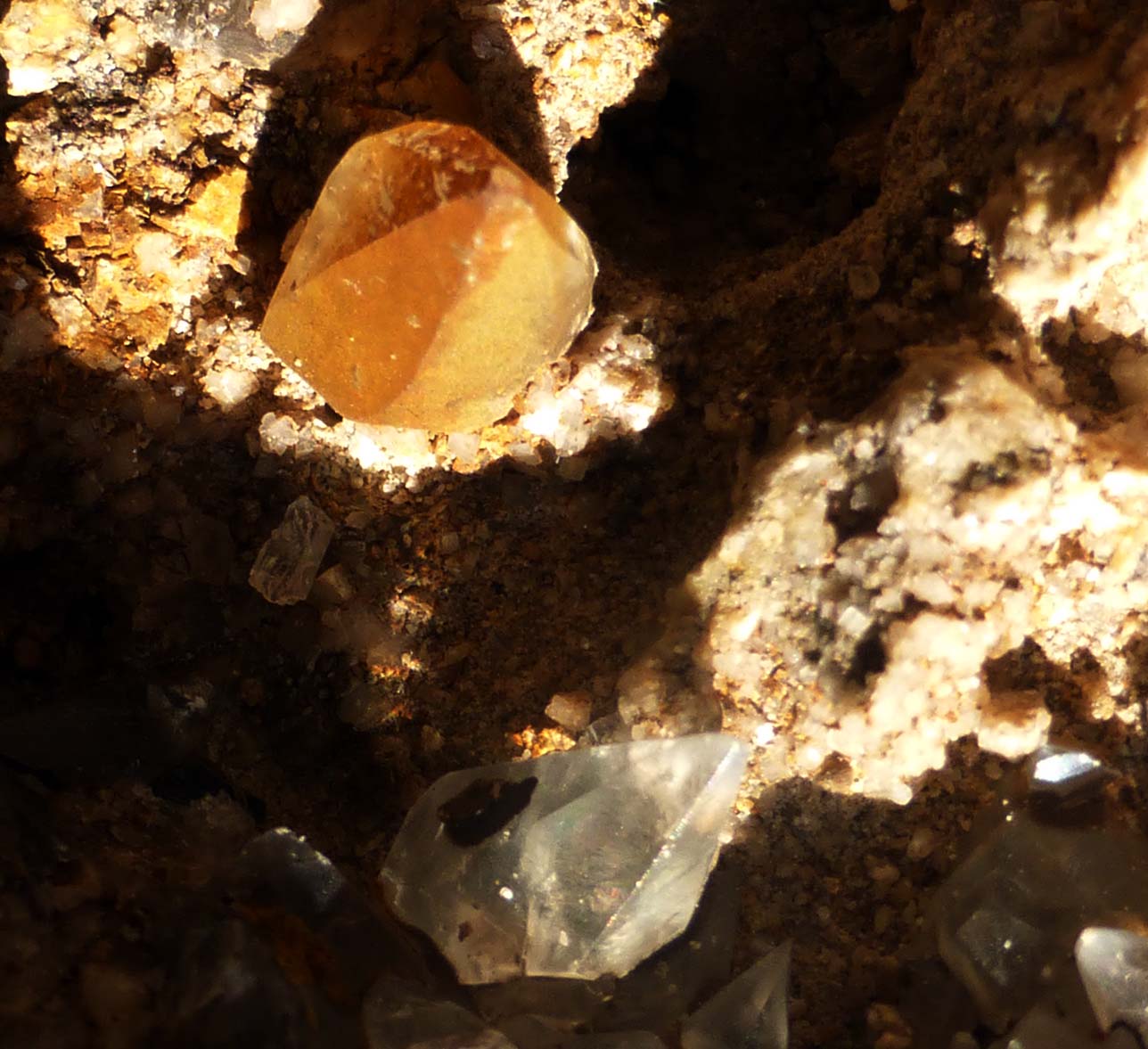 On a juste trouvé une seule toute petite tétraédrite (2mm) sur dolomie, des tache de malachite et azurite sur baryte quelque petite calcite, un peu de pyrite rouillée et bien sur plein de petits cristaux d'ankérite (ou sidérite?) mais sans rien dessus.