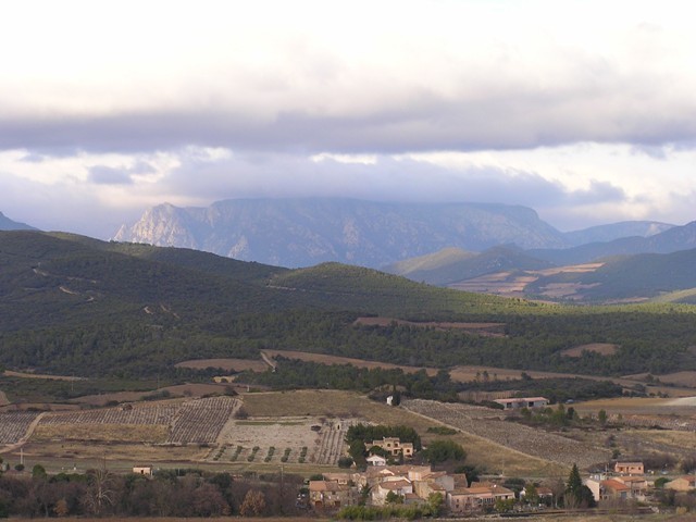 " Et dans le paysage elle apparaît toujours en bleuté ! Avec des niveaux de bleus différents qui s'emboîtent de l'avant plan à l'arrière plan,... une beauté ! Entre elle et le mer s'étend la plaine du Languedoc."