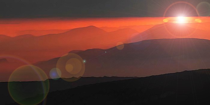 c'est juste un reflet, Dans ton montage, il y a un soleil complet avec des reflets circulaires. Sur la photo originale c'est le même principe mais il y a juste un demi soleil, donc un demi reflet. Je ne vois que ça comme explication.
