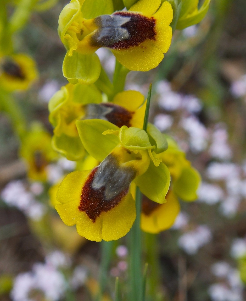 C'est joli comme nom Bragalou. Je ne connaissais pas ce nom local pour ces fleurs qui forment de magnifiques groupements en cette saison dans le Languedoc. Pour ceux qui ne connaissent pas, je conseille le cirque de Mourèze où cette plante est très présente au milieu de tant d'autres (les cistes notamment). Quant à l'Ophrys lutea, c'est un vrai petit bijou des garrigues.