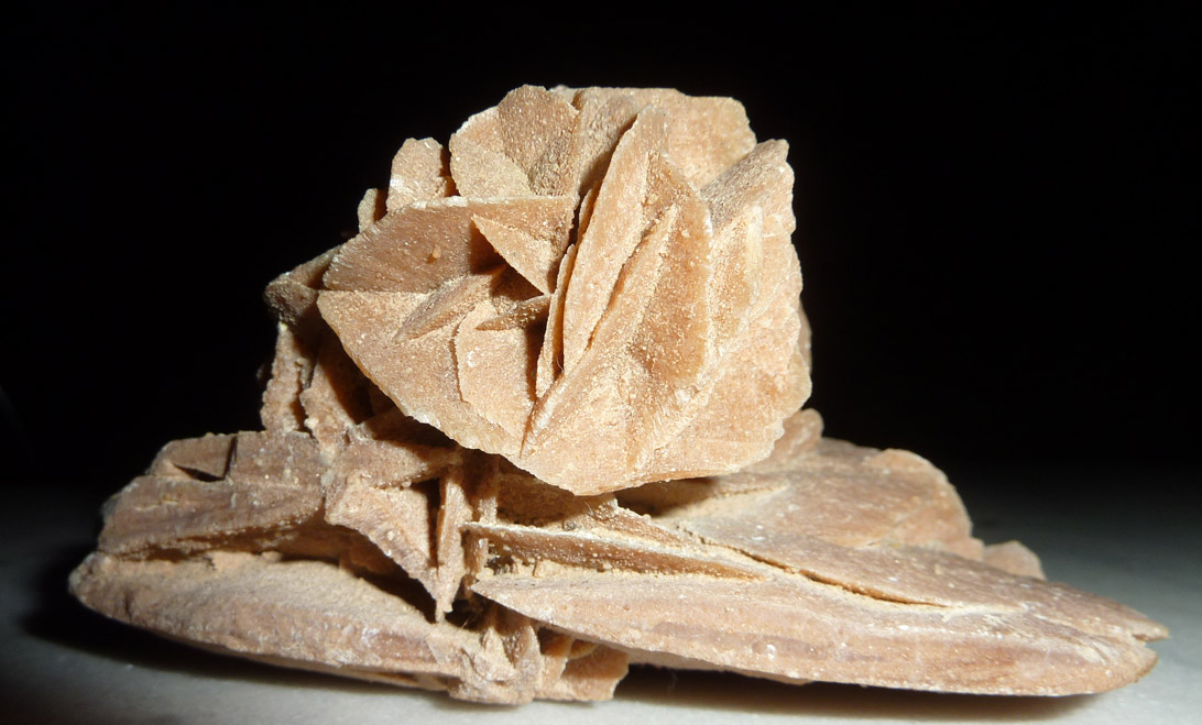 La "rose des sables" du désert est une rosette de cristaux lenticulaires de gypseayant incorporé des grains de sable. Dans les rosettes de baryte les cristaux sont plus denses. Dans celles de calcite les cristaux sont rhomboédriques.