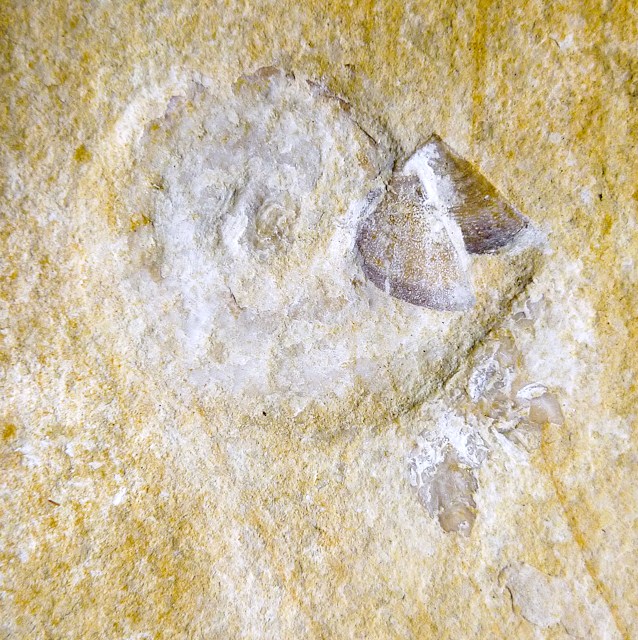 Petite (2cm) ammonite trouvée dans la carrière Brunn en Bavière (kimméridgien sup.), avec aptychi en position, et épizoaires fixés sur la coquille du vivant de l'animal (des cirripèdes style 'pouce-pied'). Un autre spécimen plus grand (4 cm) montre également des parties molles (siphon + système rénal) avec toujours cirripèdes fixés, mais je l'ai pas encore photographié...