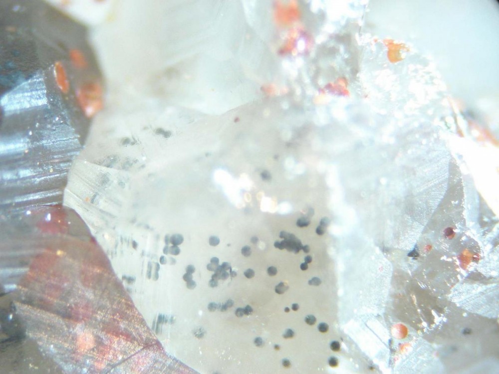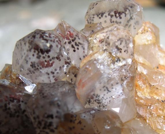 des inclusions d 'hématite dans des cristaux de quartz(hématite ou peut -être autre minéral du fer ).