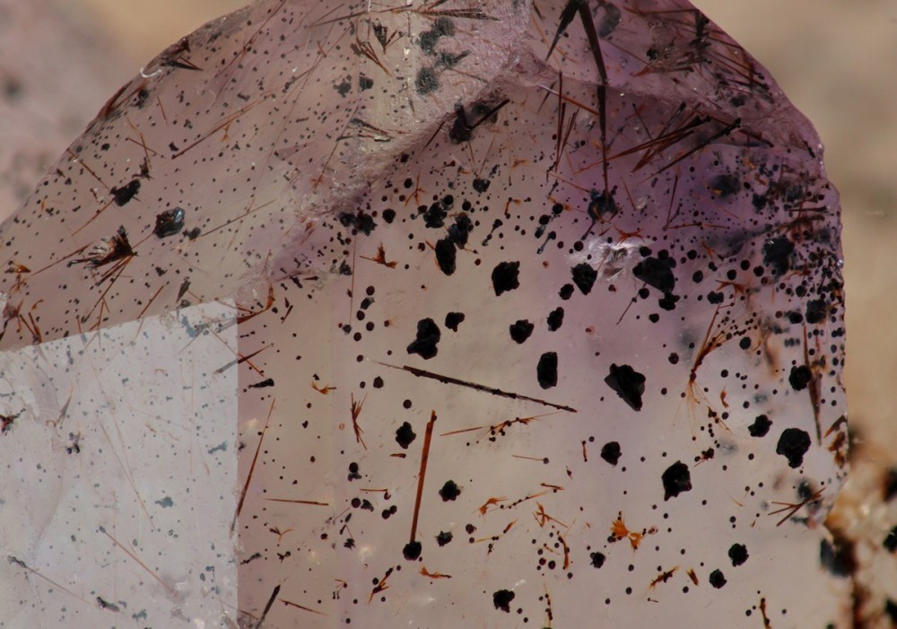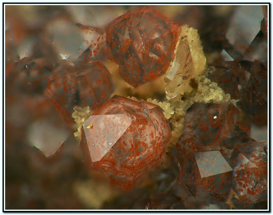 Petites sphérules d'oxydes de fer dans du quartz.