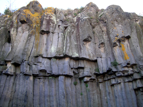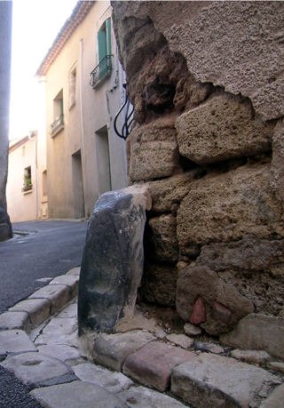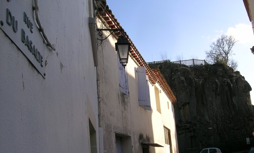 En refroidissant, la lave s'est transformée en roche de forme prismatique. Ce basalte encore exploité de nos jours est partout présent dans le village de S.Thibéry. Il était utilisé sous forme de moellons pour la construction des bâtiments, de pavés pour l'empierrement des rues ou de gravillon pour recouvrir les routes. On trouve aussi à l'angle des rues, des prismes de basalte transformés en chasse-roue.