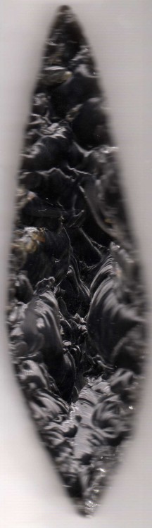 à ma connaissance je ne crois pas, sauf démenti par spécialiste archéologue qu'en France, il y ait eu une industrie paléo ou néolithique avec de l'obsidienne qui est particulièrement rare chez nous ; pour patienter voici une lame en obsidienne dorée taille récente, mais bel objet quand même.