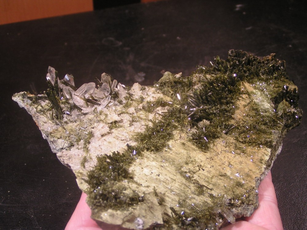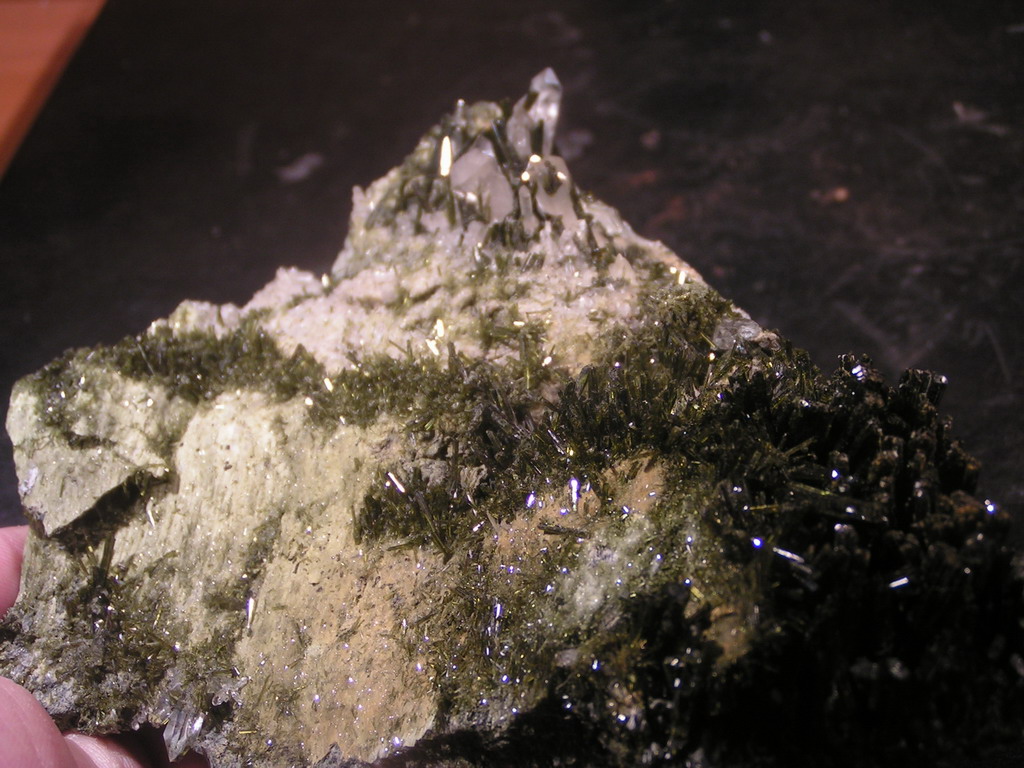 :super: Je suppose que ce minéral plutôt banal, l'épidote doit être plus courant, que le Réalgar, la Riebeckite ou bien la Fayalite, en voici de Corse :siffler: