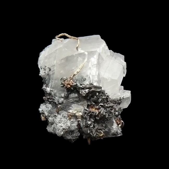 Argent natif, acanthite et calcite, Mexique.