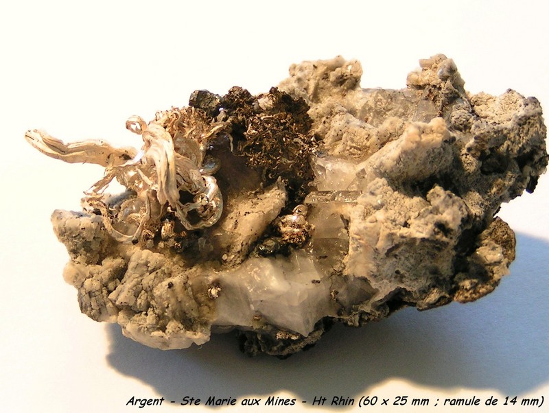 Photos de cristaux d'Argent, et les minéraux argentifères, la minéralogie et cristallographie, les minéraux associés à l'Argent natif, les gîtes de cette espèce minérale et leur géologie, en France et dans le monde, discussions et échanges.