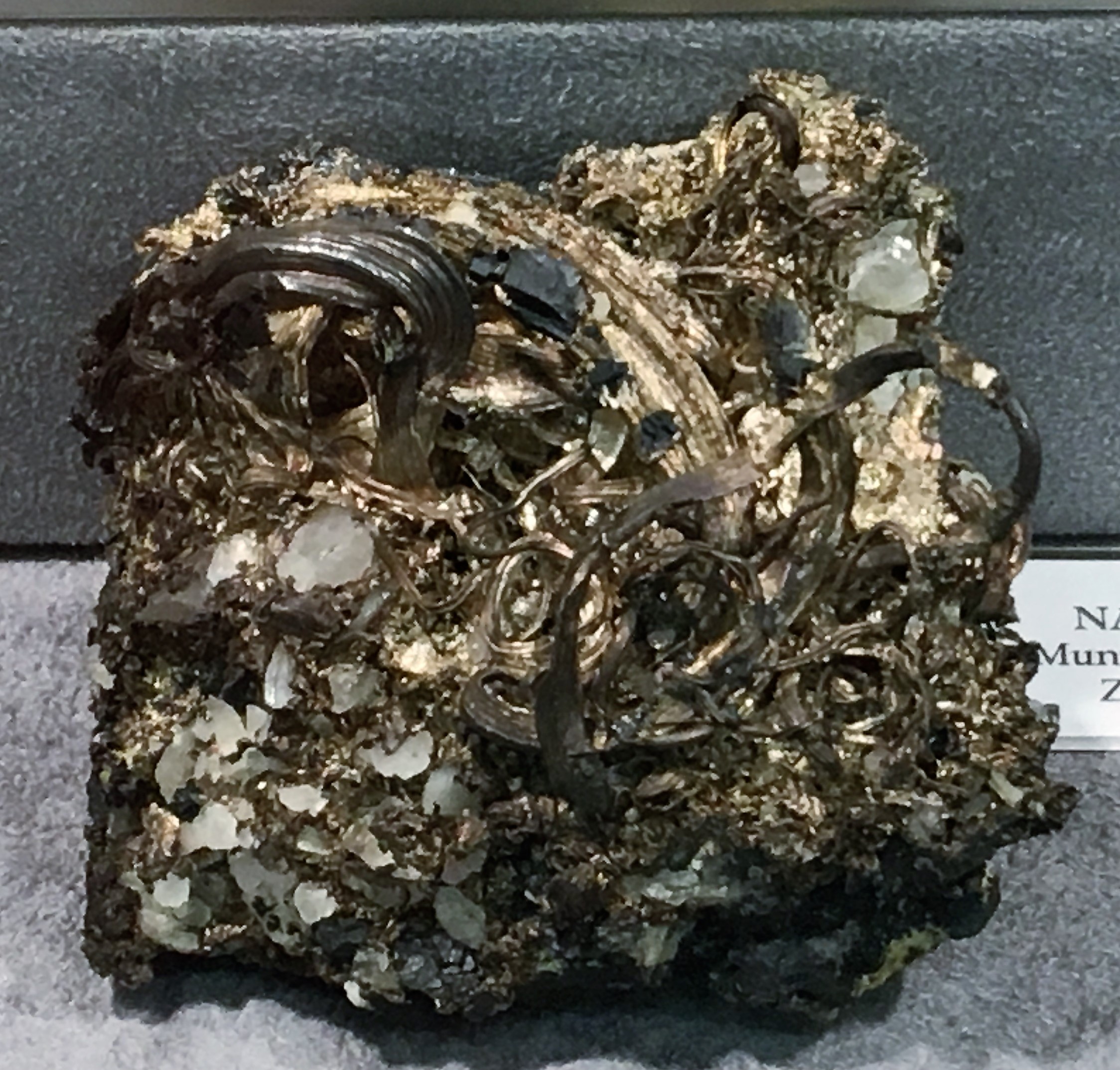 Argent natif sur cuivre natif, Houghton county, Michigan, USA.