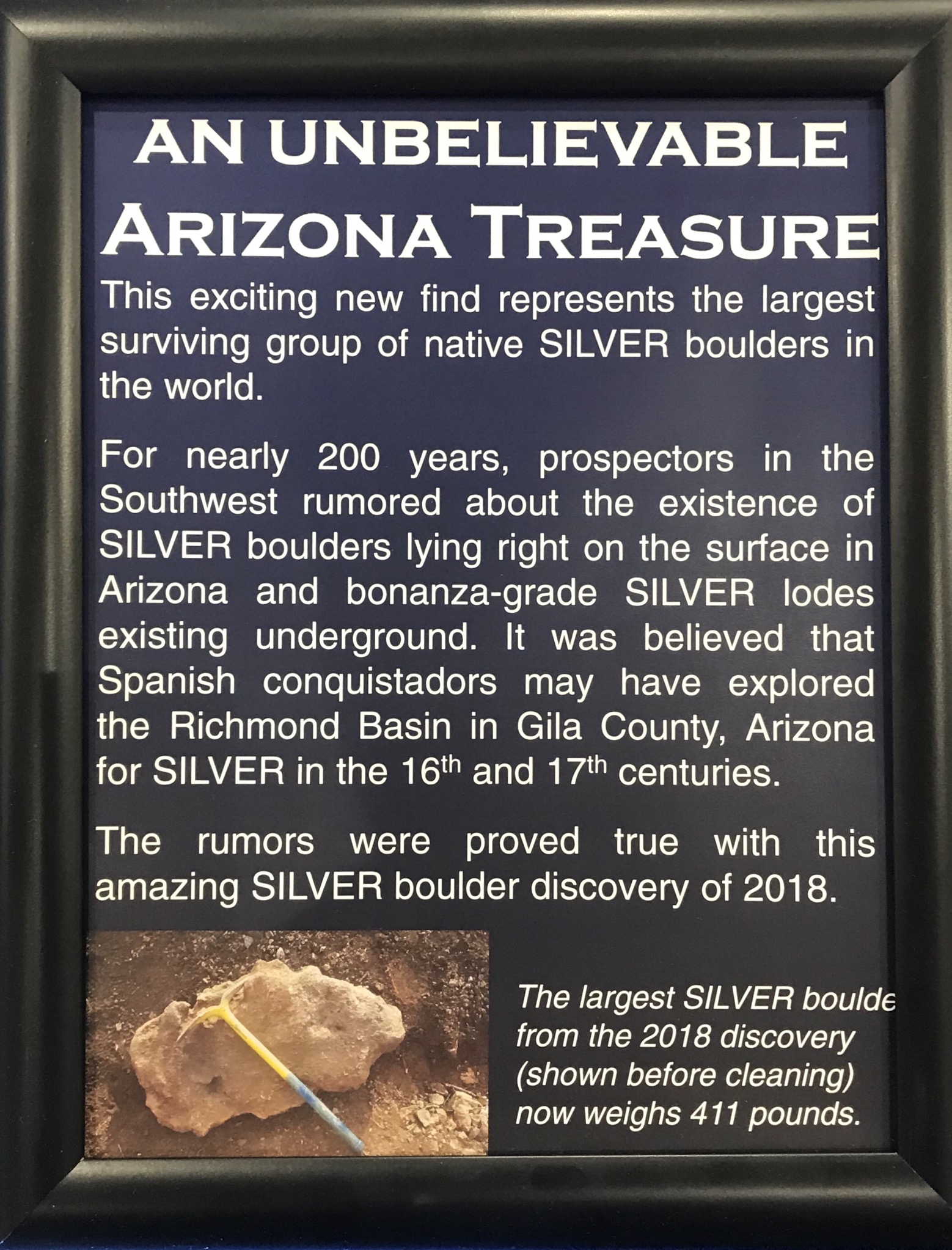 Découverte de « pépites » d’argent et autres minéraux argentifères en Arizona, jusqu’à environ 200 kgs, pour un total de 300 kgs.