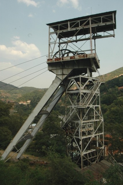Le chevalement principal de Trepca (qui date des années 1965-70) a la particularité d'avoir sa tour d'extraction (l'avant carré) orientée suivant une direction en rotation d'une vingtaine de degrés par rapport à la superstructure qui supporte les molettes :P et les poussards qui s'arcqueboutent dessus. C'est assez rare dans le monde pour être signalé !