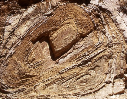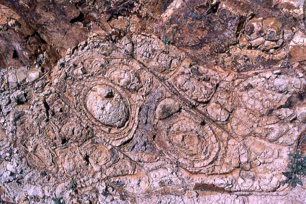 C'est sympa ton truc. A priori je pense que la structure concentrique est d'origine, à voir la couche dure à l'extérieur. Concrétions algaires? pour du pillow lava ça me parait difficile, ou une structure de granite orbiculaire, je ne sais pas trop. Tu as une idée du contexte ?