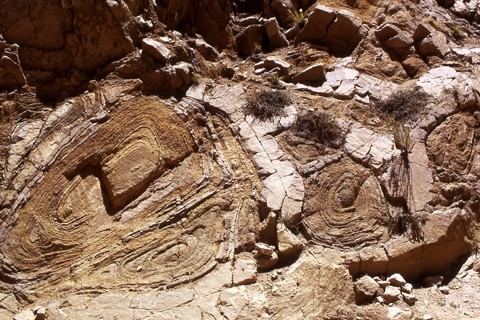 Je ne sais plus quelle est la roche représentée ici, photographiée en pensant à autre chose pour une fois...encore, dans les Andes péruviennes (entre Casma et Huaraz); et pourquoi cette "zonation" des grains minéraux ?