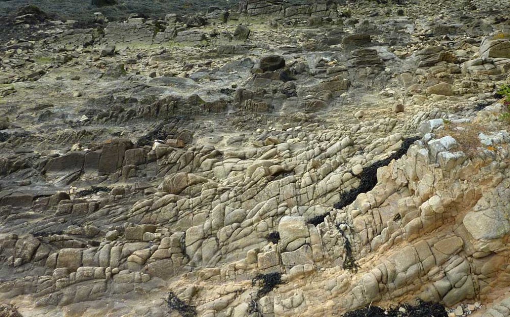 Je ne sais plus quelle est la roche représentée ici, .../... et pourquoi cette "zonation" des grains minéraux ?
